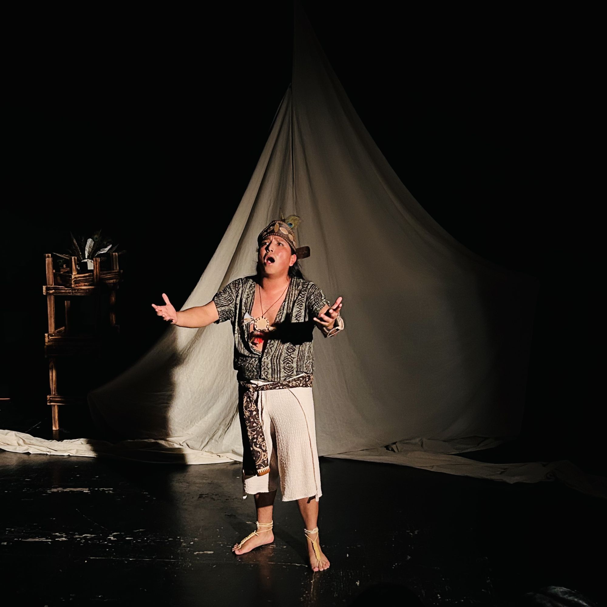 La vela se izó en torno a una estética mesoamericana y nos recibió para iniciar una experiencia en donde el barroquismo sonoro nos narró los lamentos del ser humano que al no tener claro el significado de la palabra destino, son alcanzados por sus elecciones.